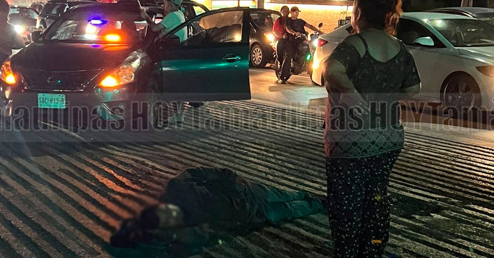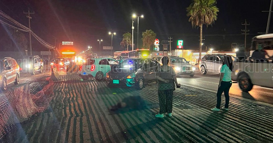 Señora junto al motociclista que resultó lesionado al impactarse contra la valla de concreto en la carretera Reynosa-Río Bravo