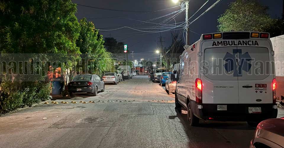 Ambulancia y servicios Periciales al exterior del domicilio donde fue encontrado un joven muerto en Reynosa