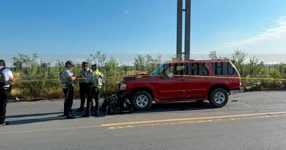 Elementos de Tránsito en el lugar donde un motociclista murió arrollado por un conductor en Reynosa