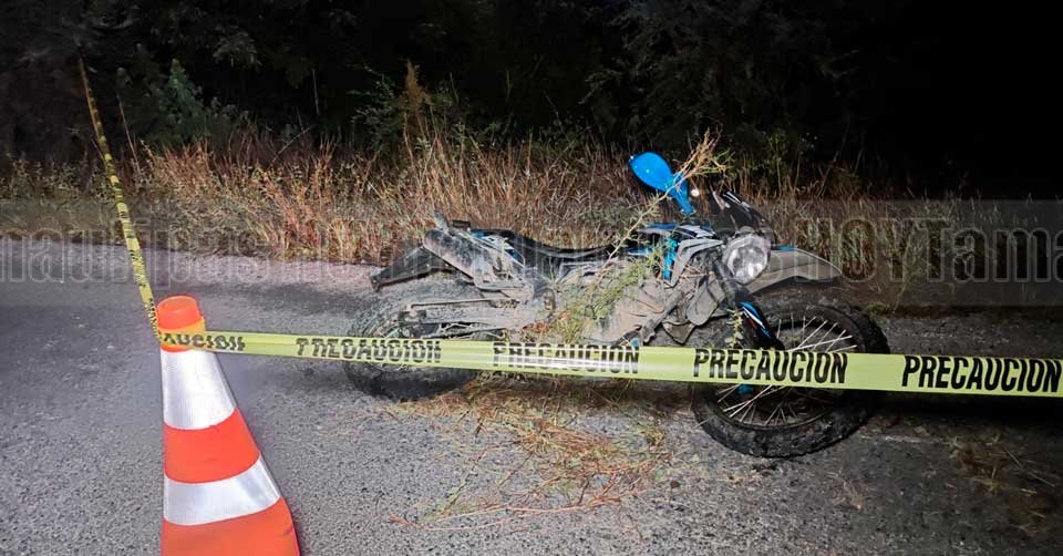 Motocicleta en la que viajaba un joven quien murió al derrapar en la carretera interejidal