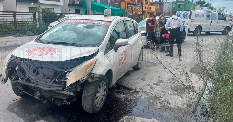 Taxi con severos daños luego de que el conductor chocara contra otra unidad resultando un menor con daños de gravedad en Matamoros