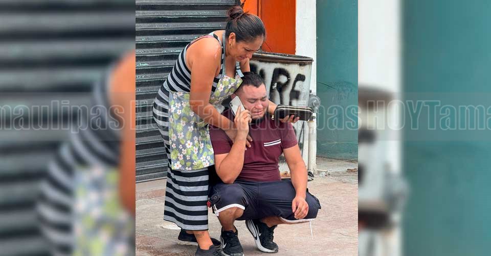 Mujer consolando al padre de un bebé que resultó con severas lesiones luego de que un conductor ebrio los chocara en Matamoros