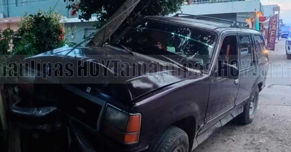 La camioneta Ford Explorer color morado trepó a la banqueta y acabó impactada contra la cerca de un domicilio en Altamira