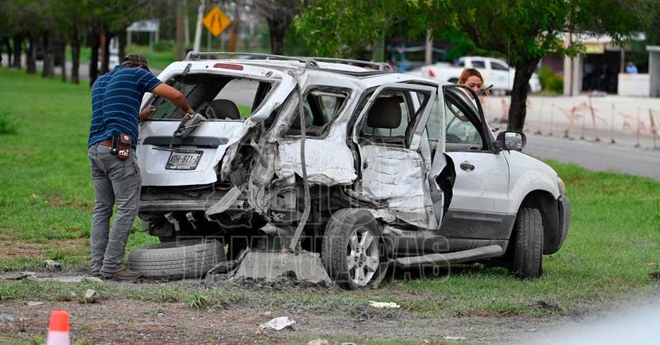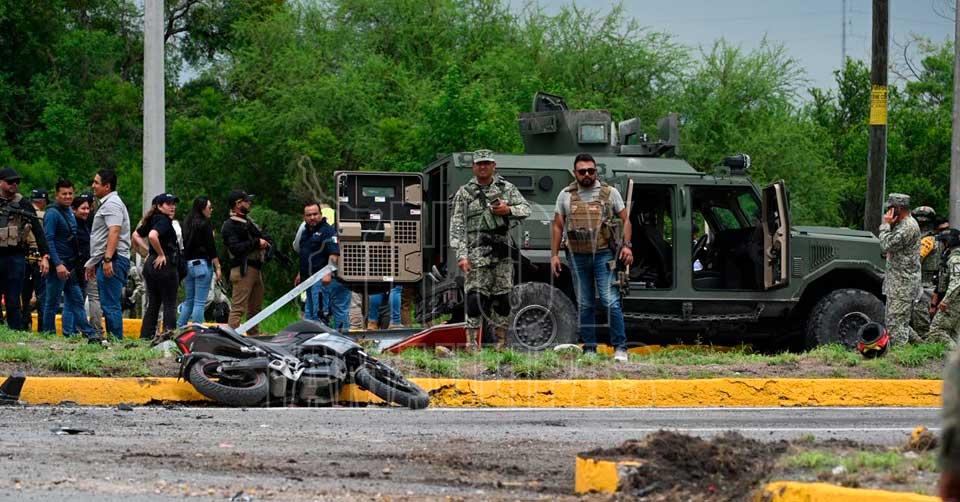 Vista general del accidente, donde un camión blindado militar, una camioneta y una motocicleta quedaron involucrados en un choque que dejó 16 heridos en el cruce del Libramiento Naciones Unidas con la carretera a Soto La Marina