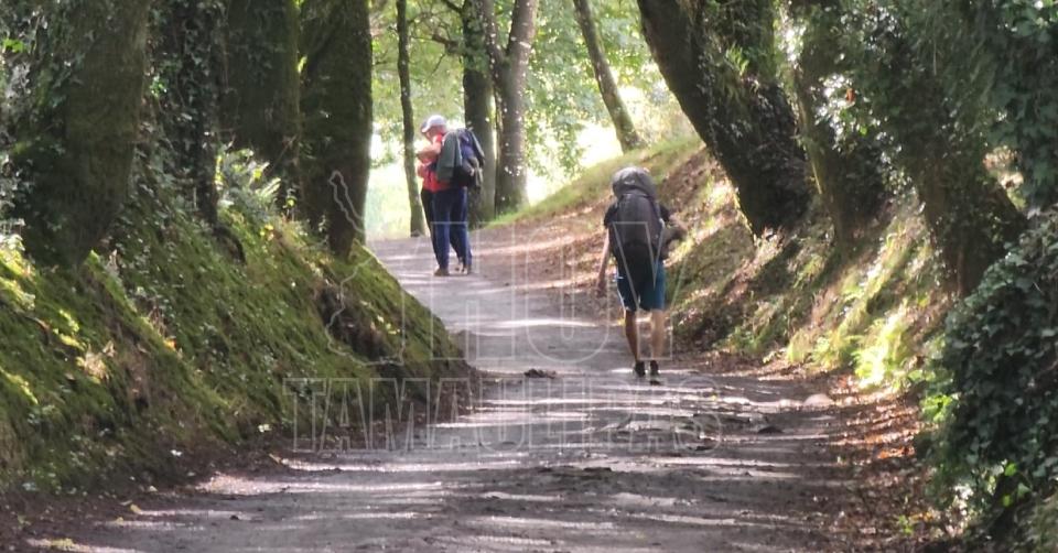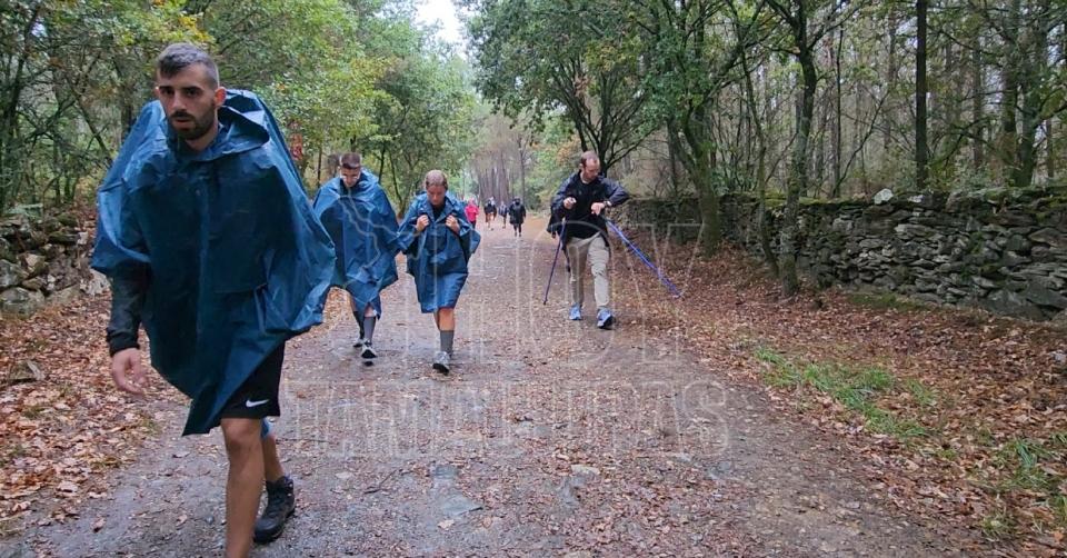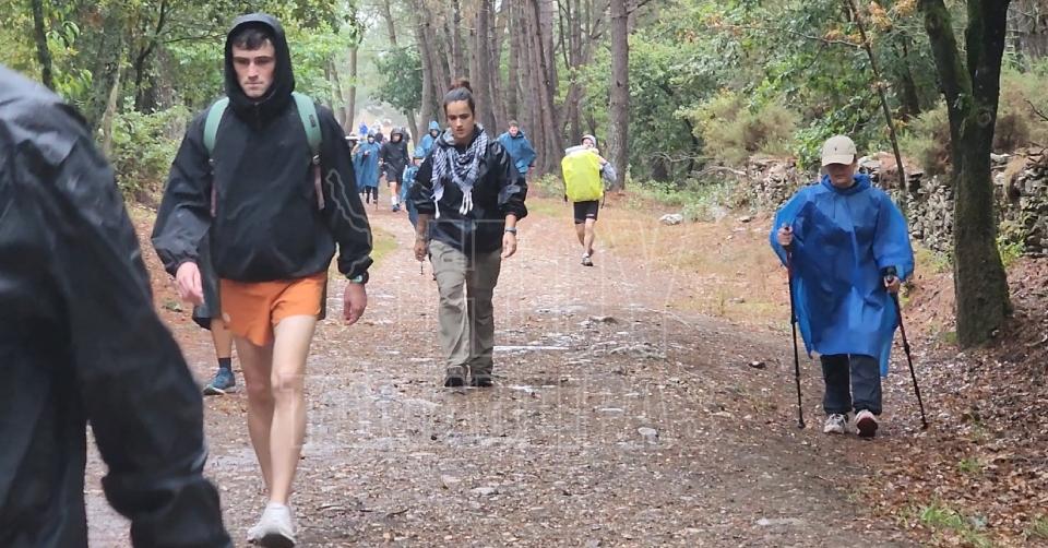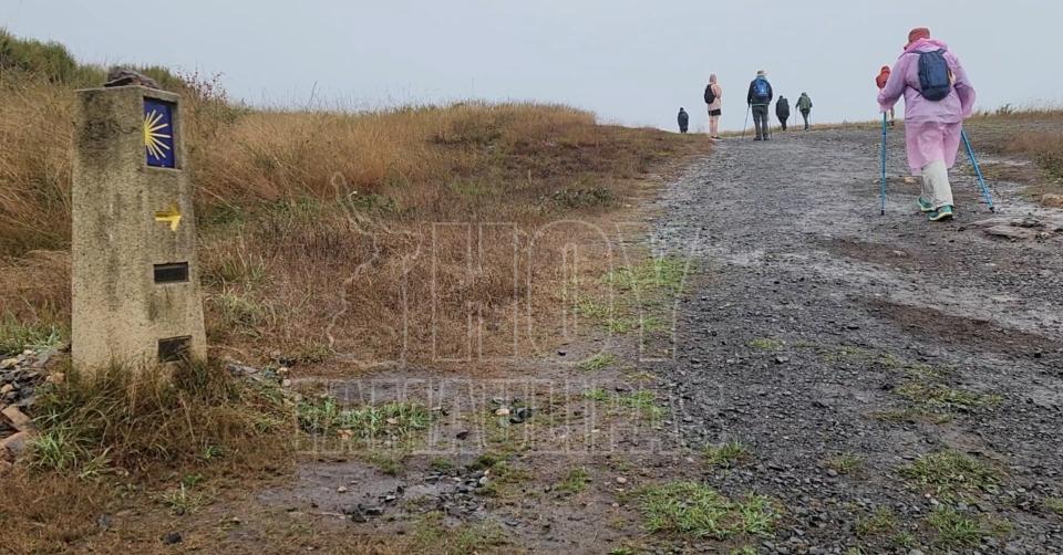 Ni la tormenta detiene a los peregrinos. Con mochilas al hombro y capas impermeables, siguen avanzando, paso a paso, hacia Santiago