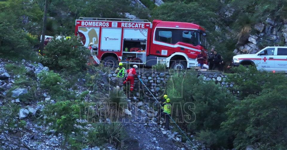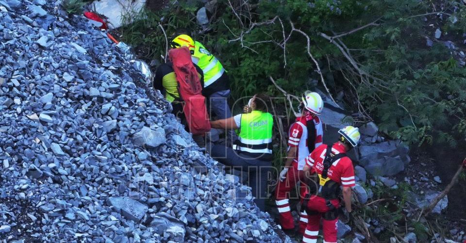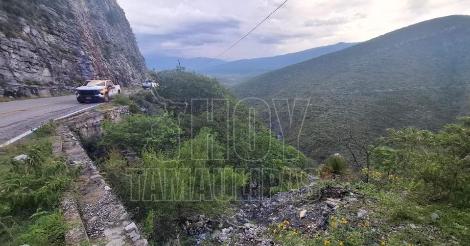 Guardia Estatal de Apoyo Carretero asegura la zona mientras se realizan las maniobras de rescate en el tramo Balcón Chihue, en Jaumave