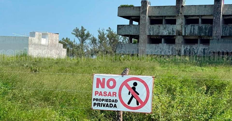 Letrero con la leyenda “Propiedad Privada, no pasar” colocado en el histórico hospital naturista en Ciudad Madero