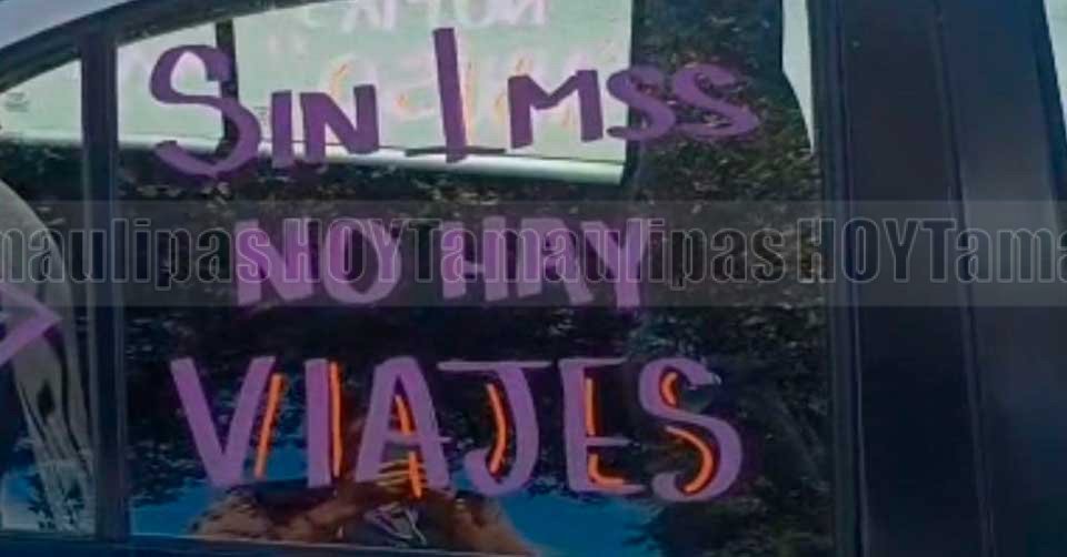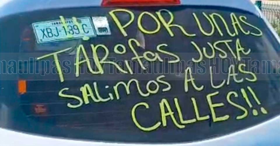 Carros con mensajes pintados participan en una protesta en Reynosa, como expresión de inconformidad ciudadana
