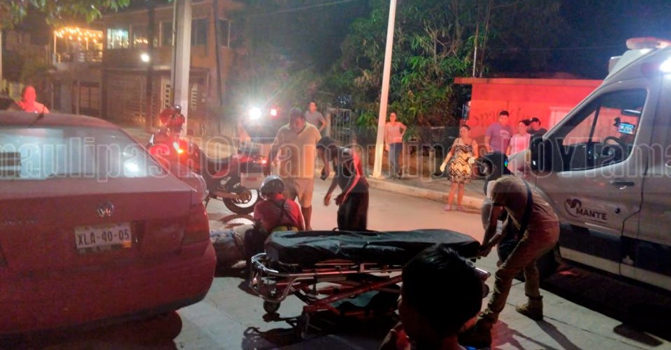 La motocicleta que conducía la mujer quedó tirada cerca de un carro estacionado en una calle de la colonia Carolina Yucatán en El Mante
