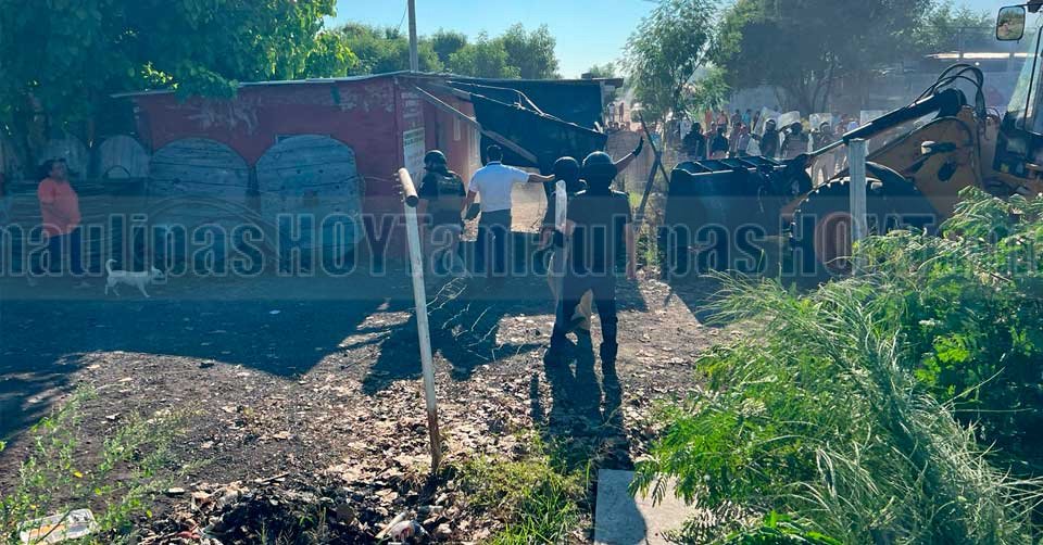 Maquinaria pesada que usaron los habitantes de la colonia 23 de Marzo para bloquear la circulación en el boulevard Colosio de Reynosa