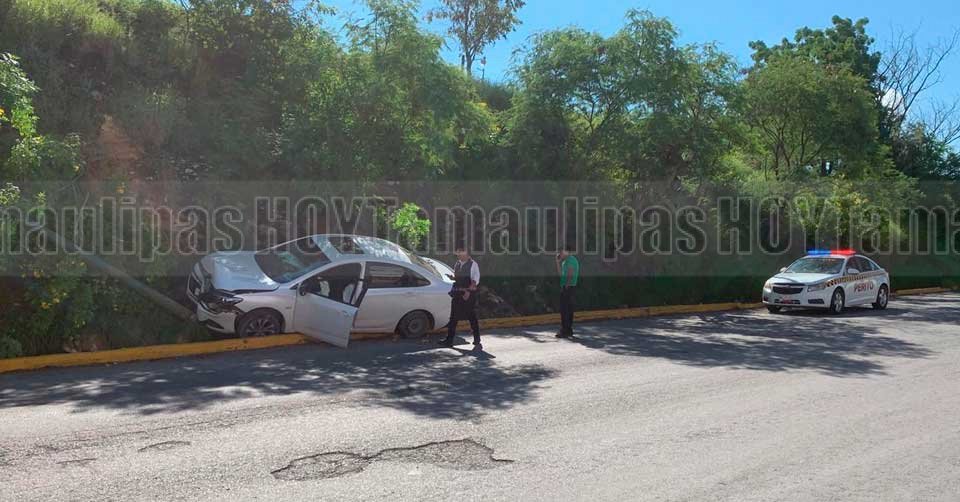 Auto con severos daños luego de impactarse contra un poste en Ciudad Victoria