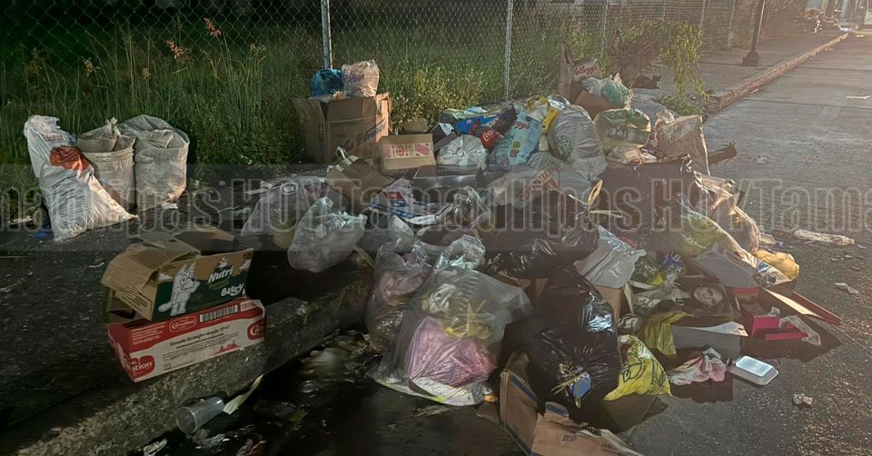 Bolsas de basura colocadas en una esquina de una calle de Tampico