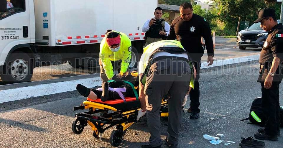 El motociclista quedó tirado sobre el Bulevar Tamaulipas en Ciudad Victoria y fue auxiliado por paramédicos del Centro Regulador de Urgencias Médicas (CRUM)