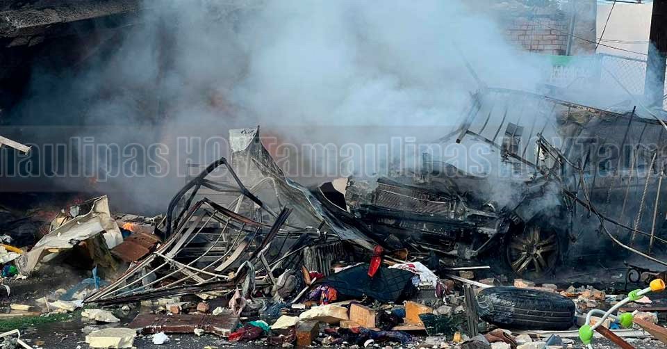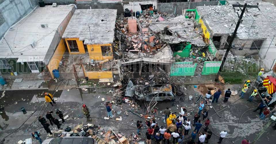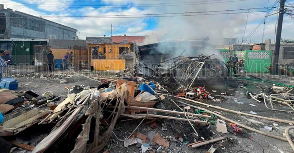 Escombros de una vivienda luego de una fuerte explosión en Nuevo Laredo