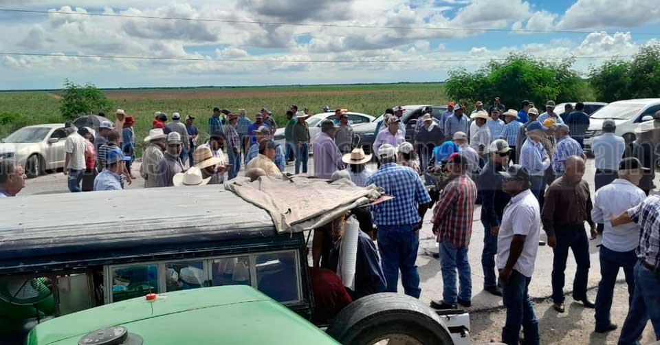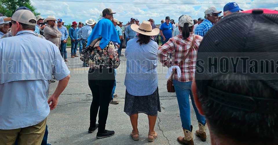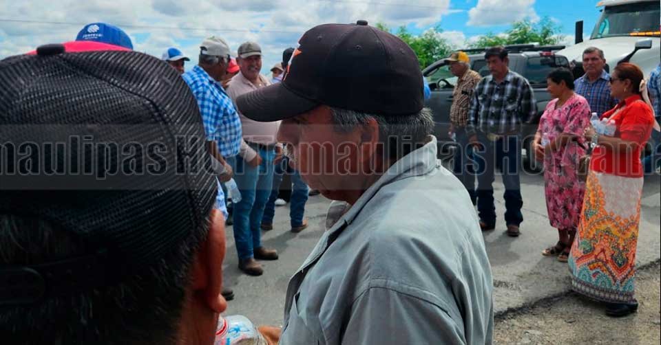 Agricultores bloqueando la carretera federal Ciudad Victoria–Matamoros, a la altura del kilómetro 201, en el entronque conocido como “la Y”