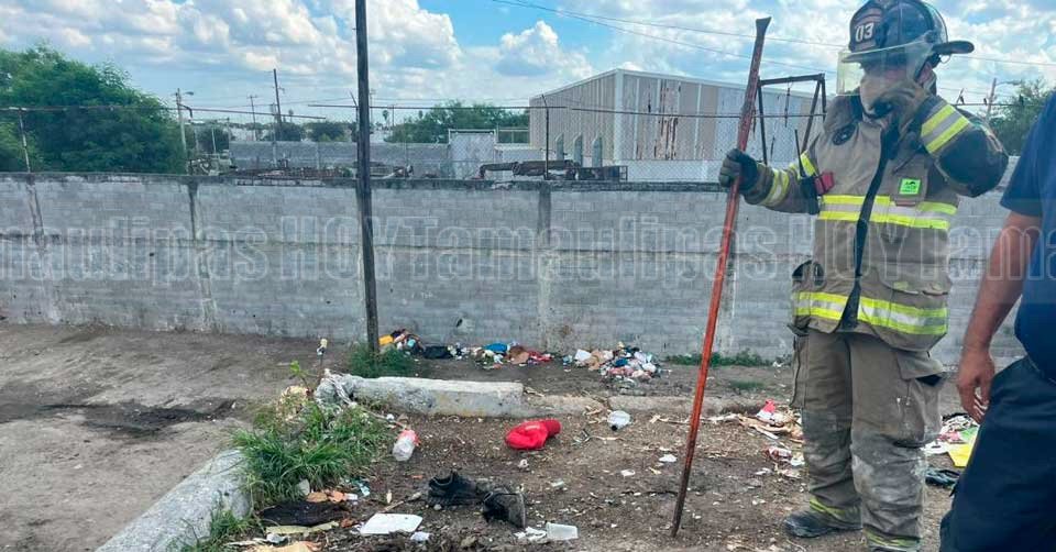 Cuerpo de Bomberos atendiendo el reporte de una persona lesionada al explotarle una pila en Matamoros