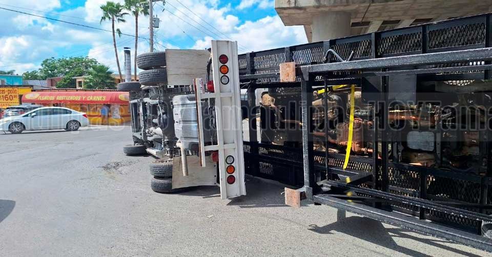 Nodriza volcada sobre el Boulevard Manuel Cavazos Lerma, a la altura de la Avenida del Niño en Matamoros