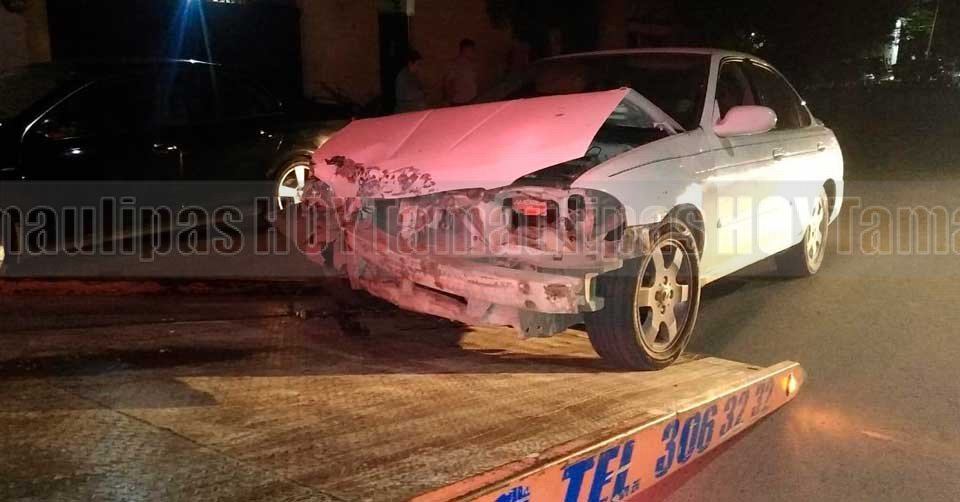 Automóvil siendo remolcado por una grúa luego de haber chocado en Ciudad Victoria