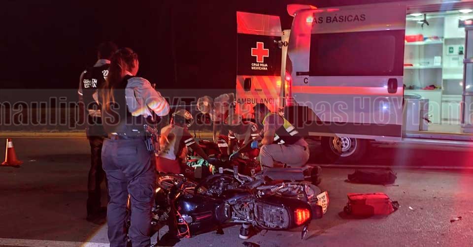 Paramédicos de la Cruz Roja atendiendo a un motociclista luego de haber derrapado en Ciudad Victoria