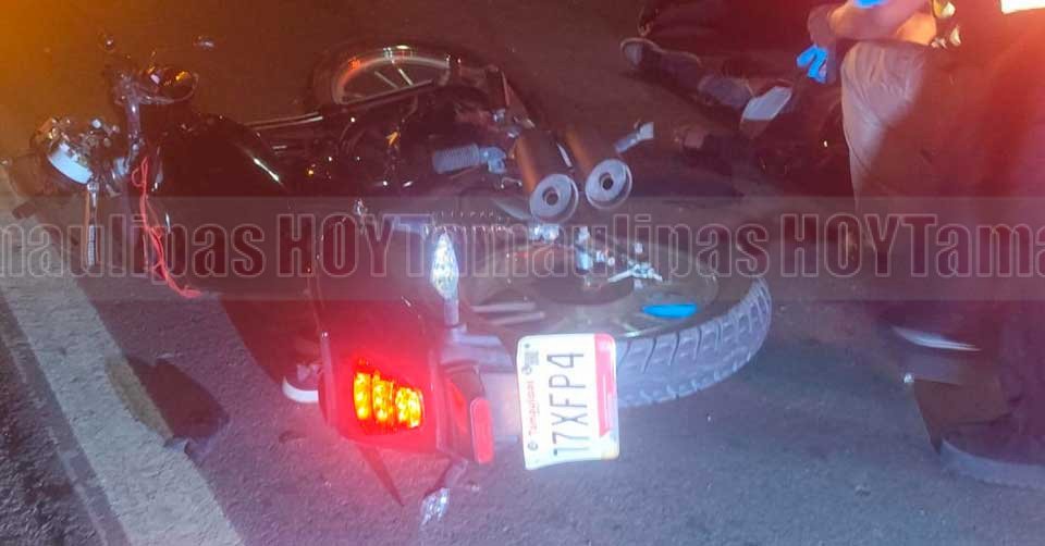 Motocicleta tirada en el pavimento luego de que su tripulante derrapara en Ciudad Victoria