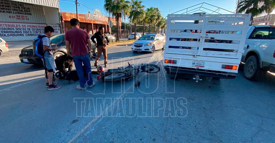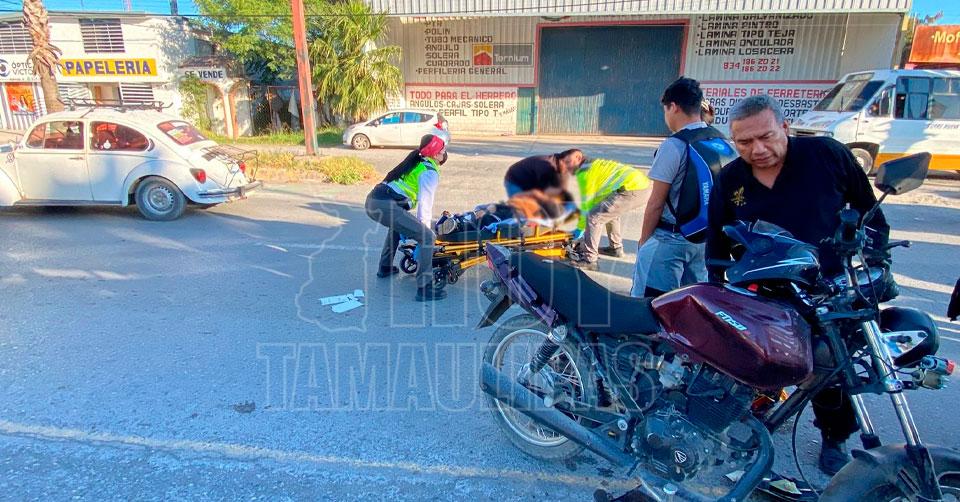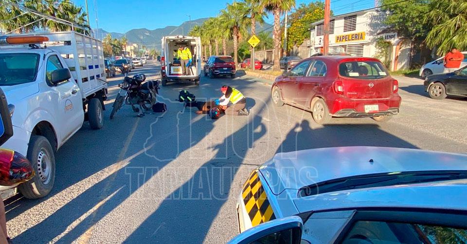 Paramédicos de la CRUM le brindaron los primeros auxilios al motociclista lesionado en la Avenida América Española y lo trasladaron a un hospital cercano