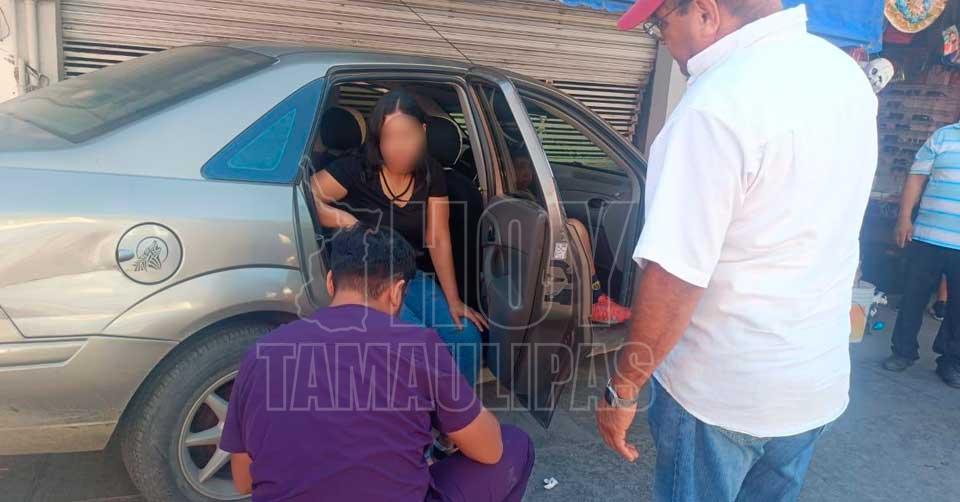 Paramédicos auxiliando a una mujer luego de haber chocado en Altamira