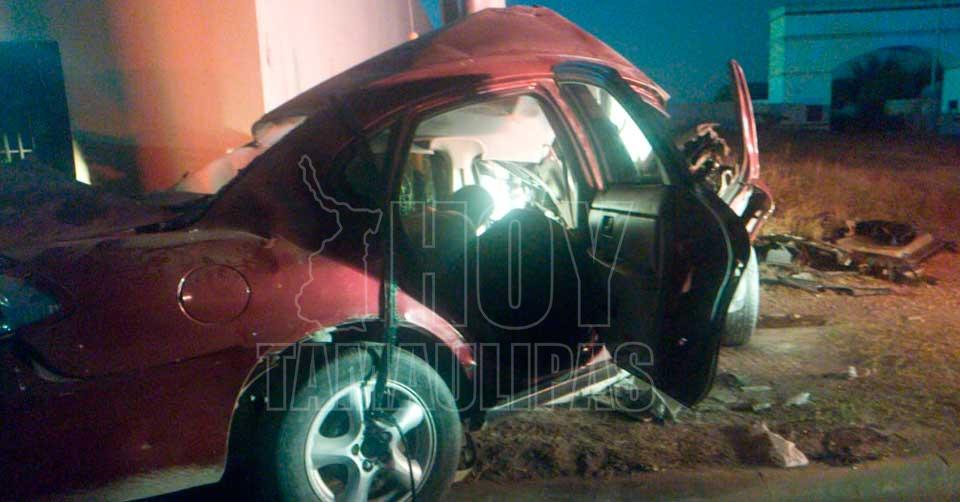 Vehículo donde viajaba un joven que perdió la vida luego de chocar contra un poste en Reynosa