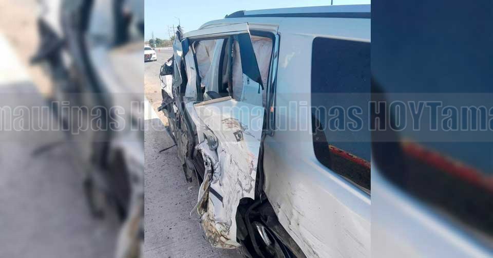 Camioneta severamente dañada luego de chocar en Soto La Marina