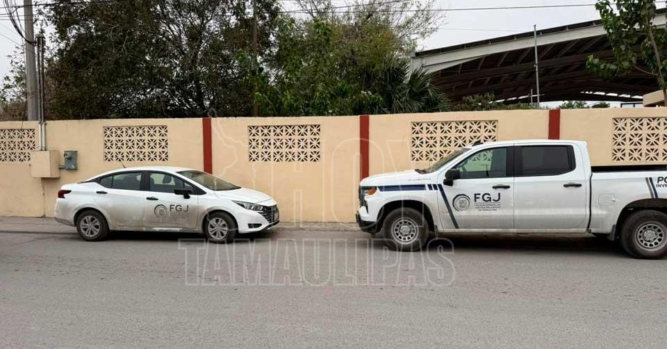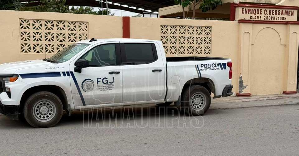 Elementos de la Fiscalía en el exterior de una escuela en Matamoros