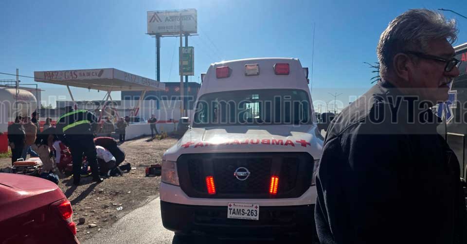 Paramédicos de la Cruz Roja auxiliando a unas personas luego de ser atropelladas en Reynosa