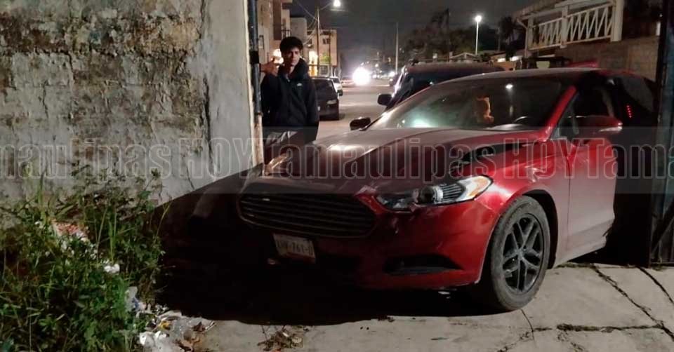 Automovil con daos en la parte frontal luego de haber chocado contra un portn en Ciudad Madero