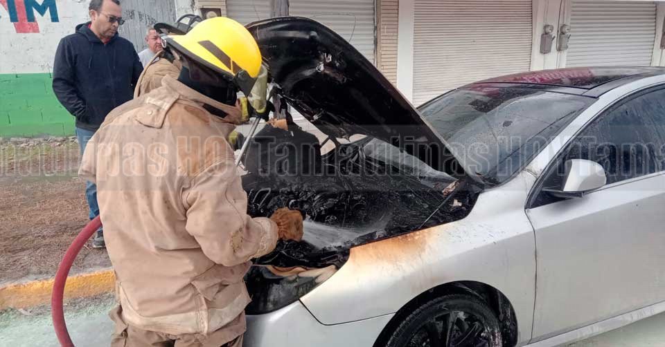 Cuerpo de Bomberos sofocando el incendio de un automvil en Ciudad Madero