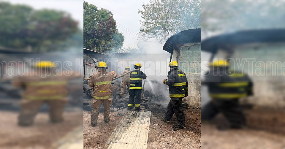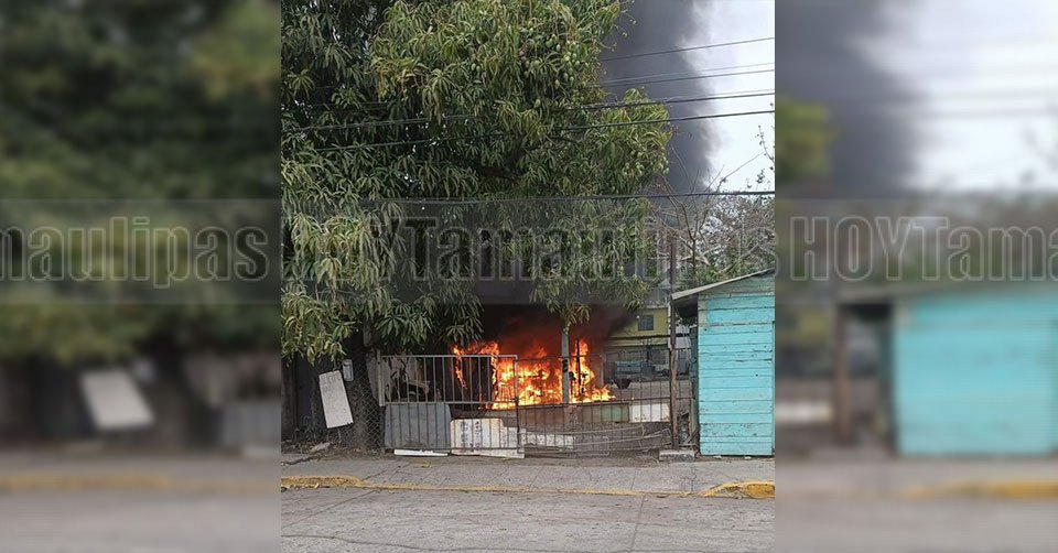 Cuerpo de Bomberos controlando el incendio de una camioneta en Altamira