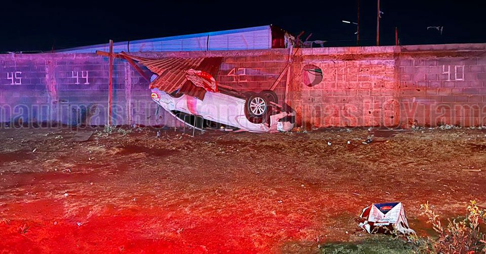 Tráiler volcado en uno de sus costados en el Puente Tampico