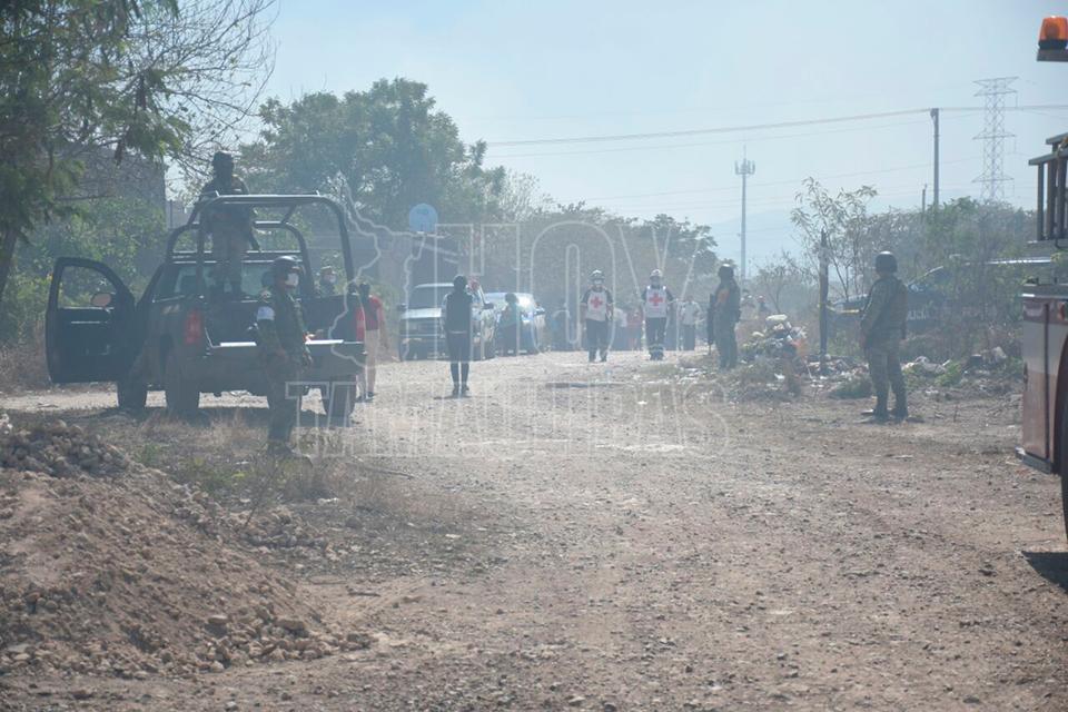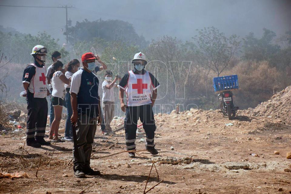 Un fuerte incendio se registra en un yonke de autos ubicado en la colonia Vamos Tamaulipas, cerca del complejo de Seguridad Pública en Ciudad Victoria. Cruz Roja en el área del incendio