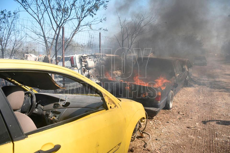 Un fuerte incendio se registra en un yonke de autos ubicado en la colonia Vamos Tamaulipas, cerca del complejo de Seguridad Pública en Ciudad Victoria. Autoridades en el lugar del incendio