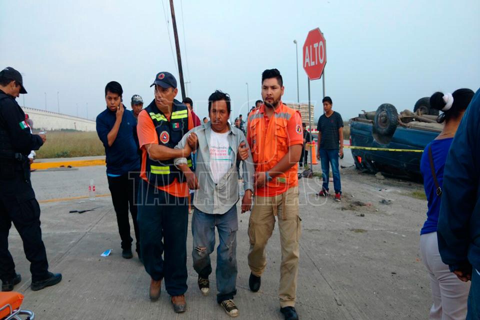 Una mujer muerta y 17 jornaleros lesionados, fue el saldo de una aparatosa volcadura sobre la carretera Tampico-Mante, lo que generó una intensa movilización de los cuerpos de auxilio
