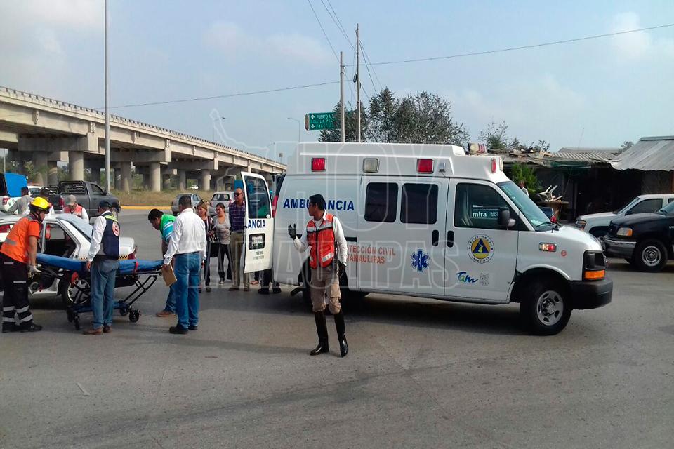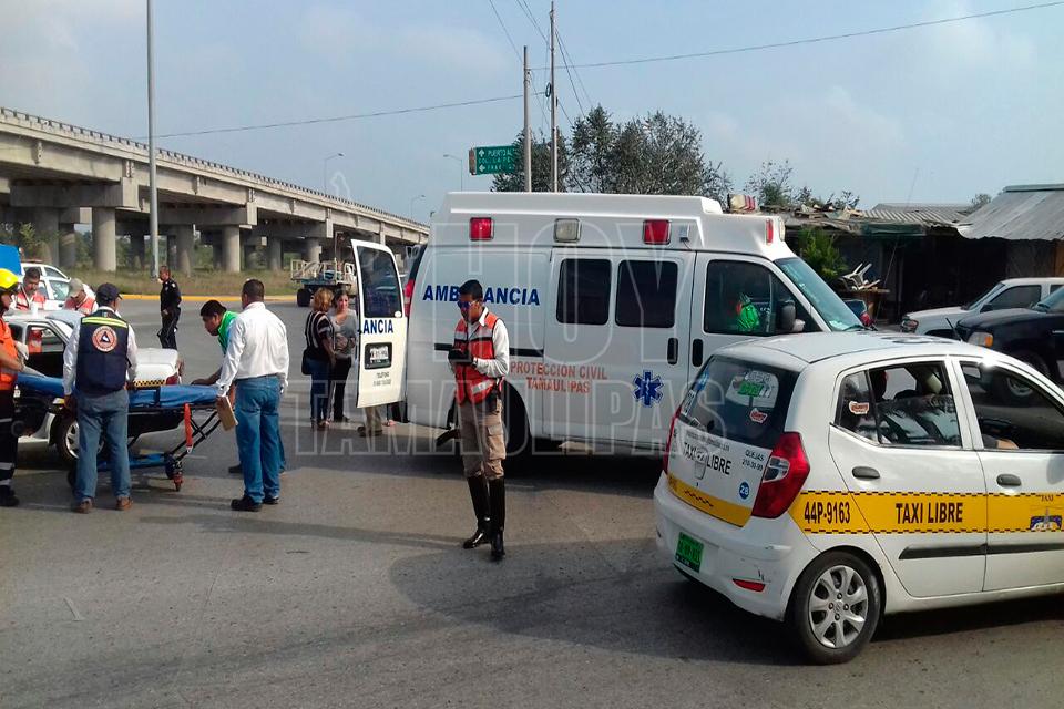 Un choque registrado entre el conductor de un taxi y la de una camioneta, arrojó como saldo dos menores de edad y dos mujeres heridos.