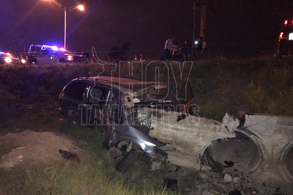 Un hombre de la tercera edad falleció la noche de ayer al chocar en su camioneta contra unos ductos de drenaje en la carretera Matamoros-Reynosa,