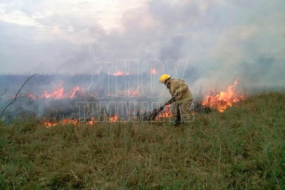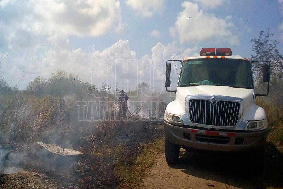 Bomberos de Altamira lograron sofocar las llamas en un terreno baldío mismo que se produjo aparentemente por la quema de basura