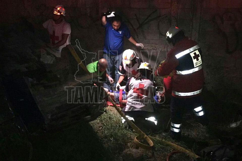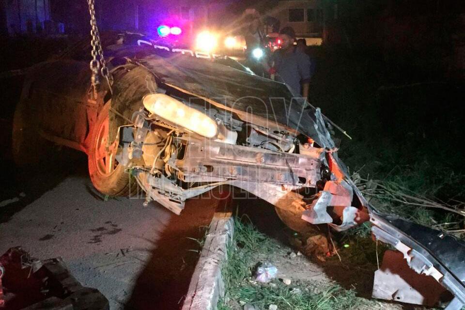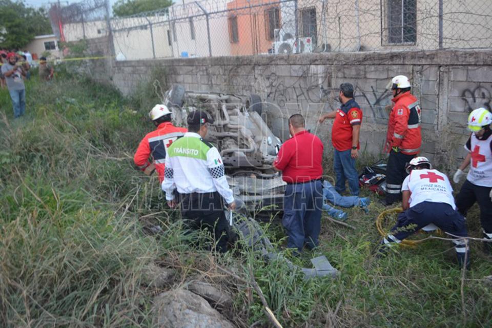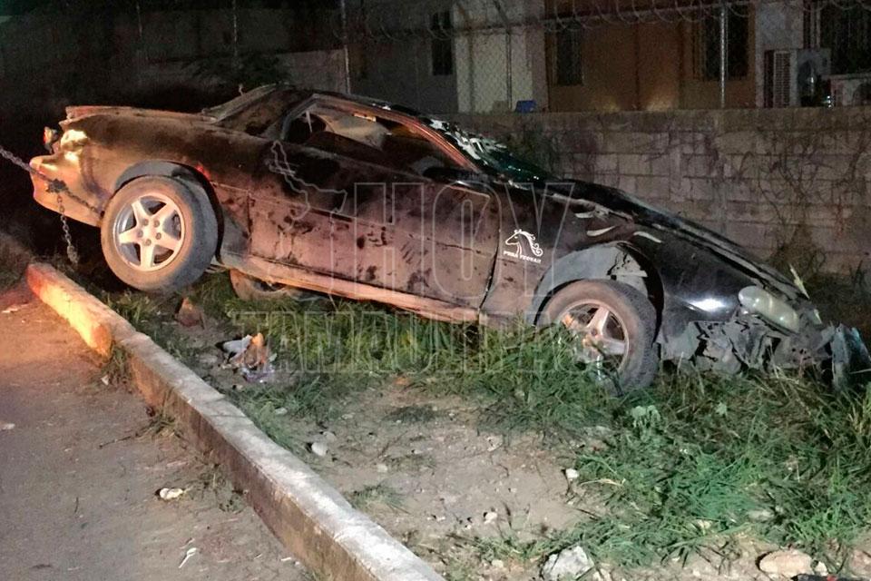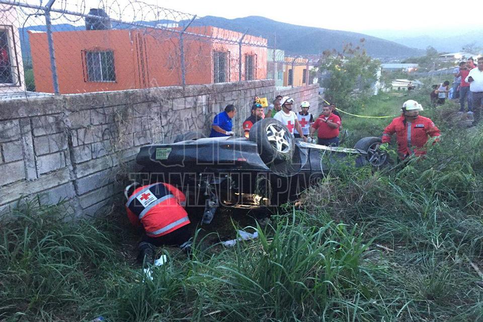Por más de una hora un joven quedó prensado entre los hierros de un Camaro que quedó totalmente destrozado y otro más resultó herido, al volcar la unidad a la altura de la calle Palma Real de la colonia El Palmar en Ciudad Victoria