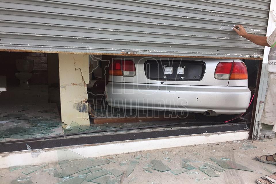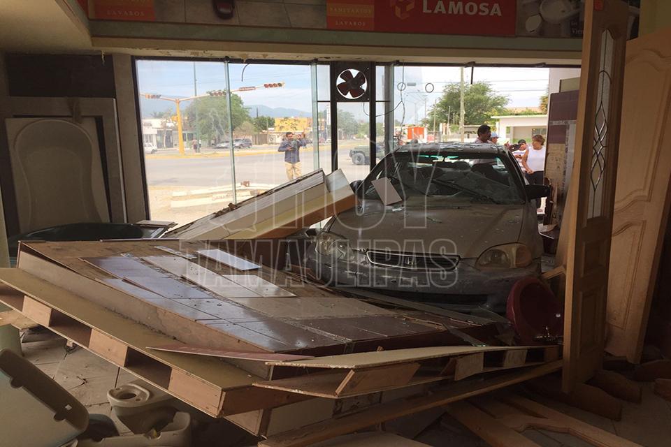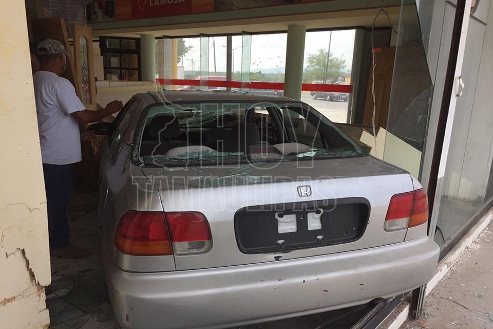 Una jovencita se introdujo con todo y vehículo el cual había sido prestado a la tienda de materiales Helmax ubicada en la Avenida La Paz de Ciudad Victoria