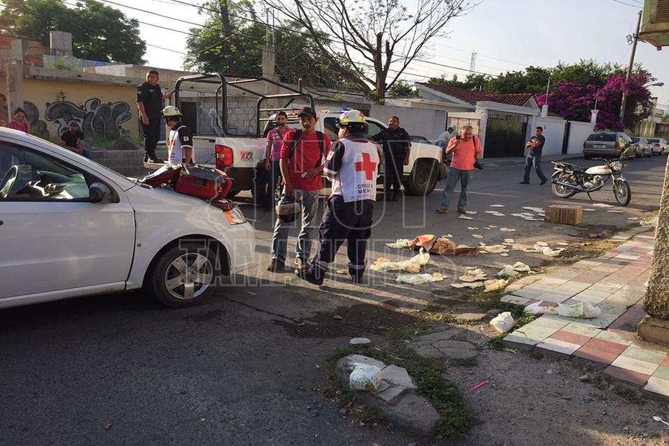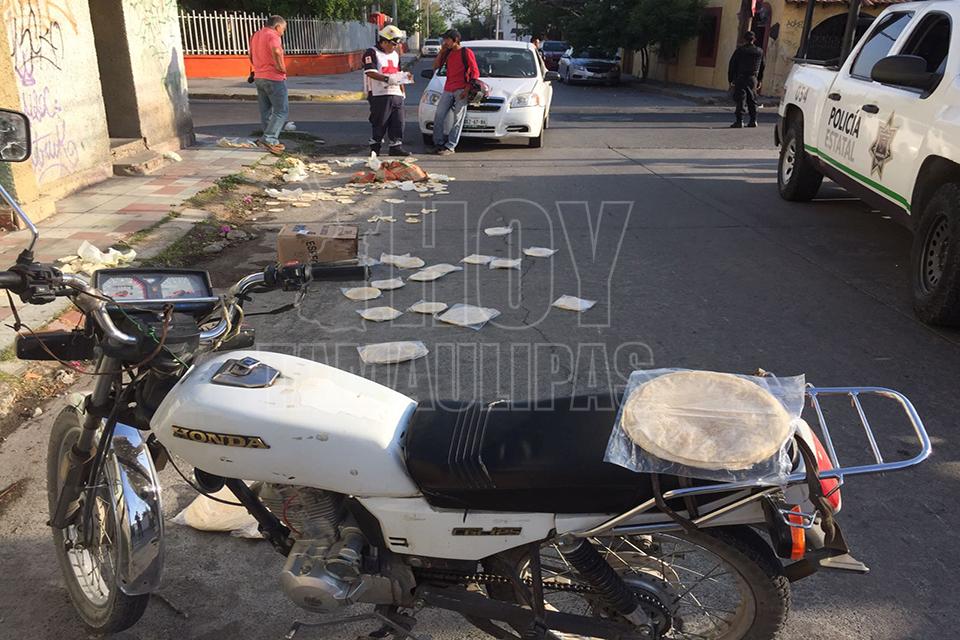 Un repartidor de tortillas resultó lesionado luego de que al omitir una señal de alto fue arrollado con todo y motocicleta