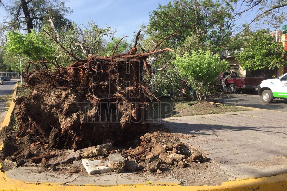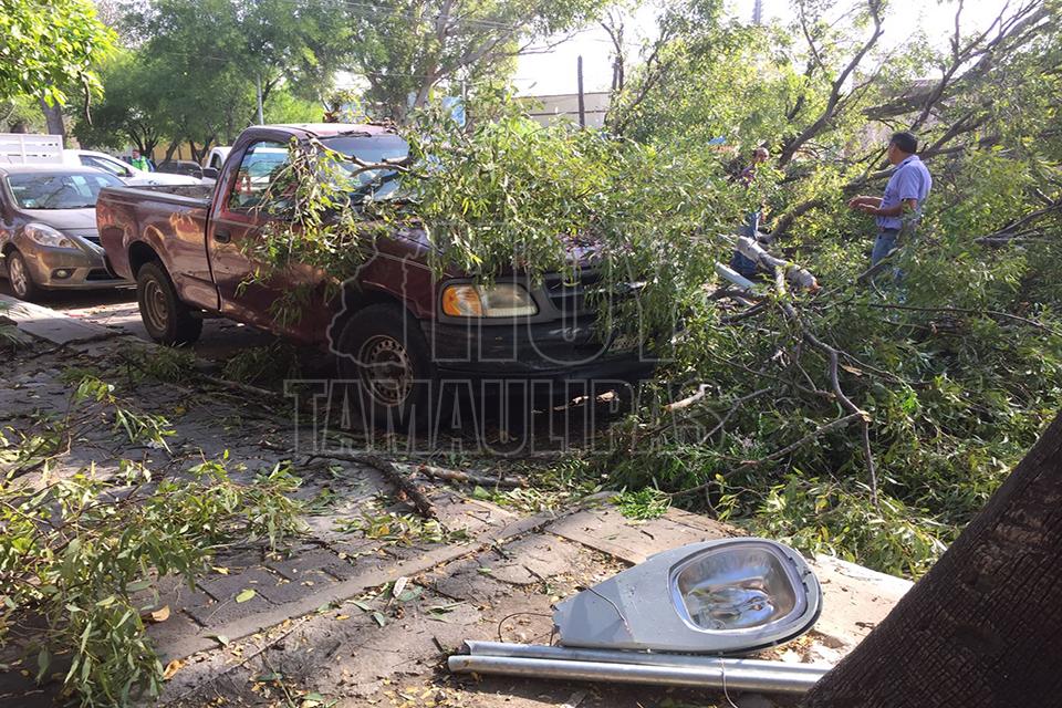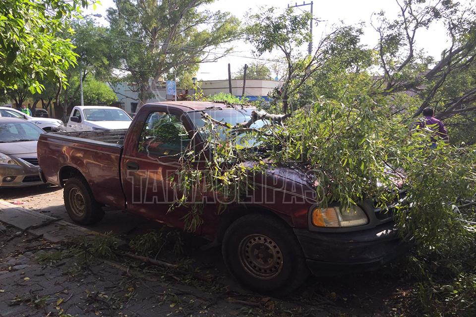 El "norte" que llegó a la capital de Tamaulipas, dejó un árbol caído en el 15 y 16 Boulevard Adolfo López Mateos en Ciudad Victoria, obstruyendo la circulación en la referida vialidad; y en el 17 Doblado otro árbol cayó y dañó una camioneta estacionada.
