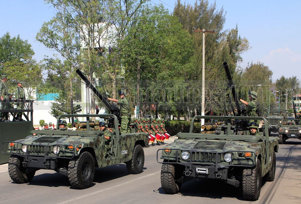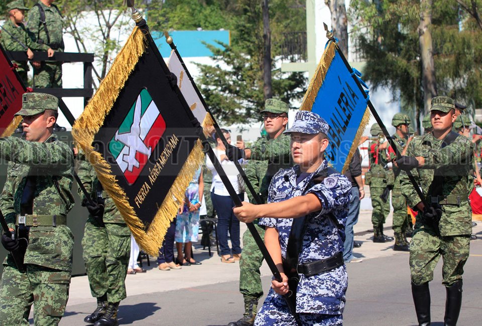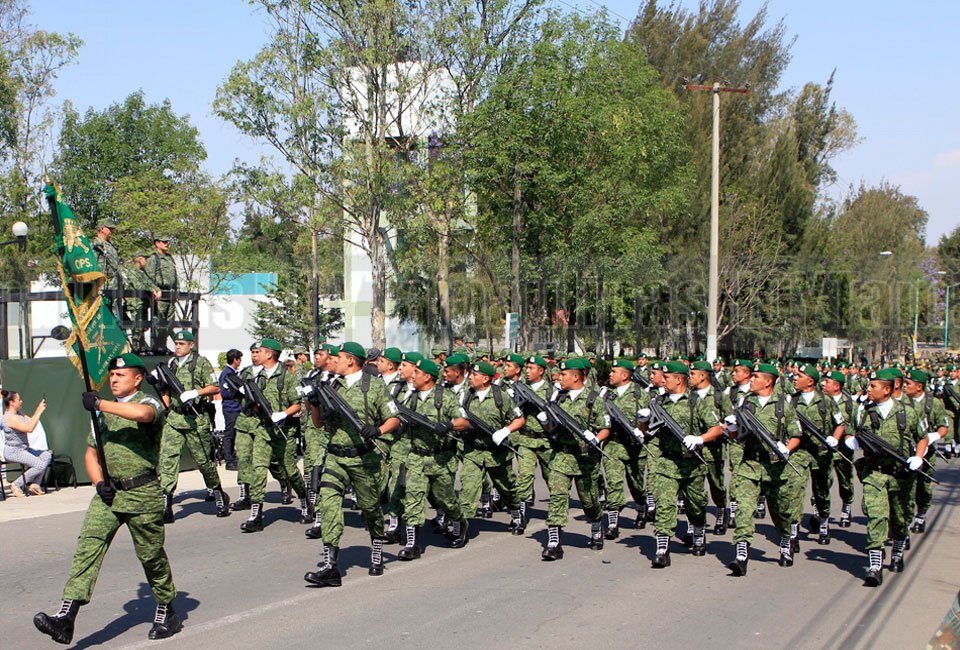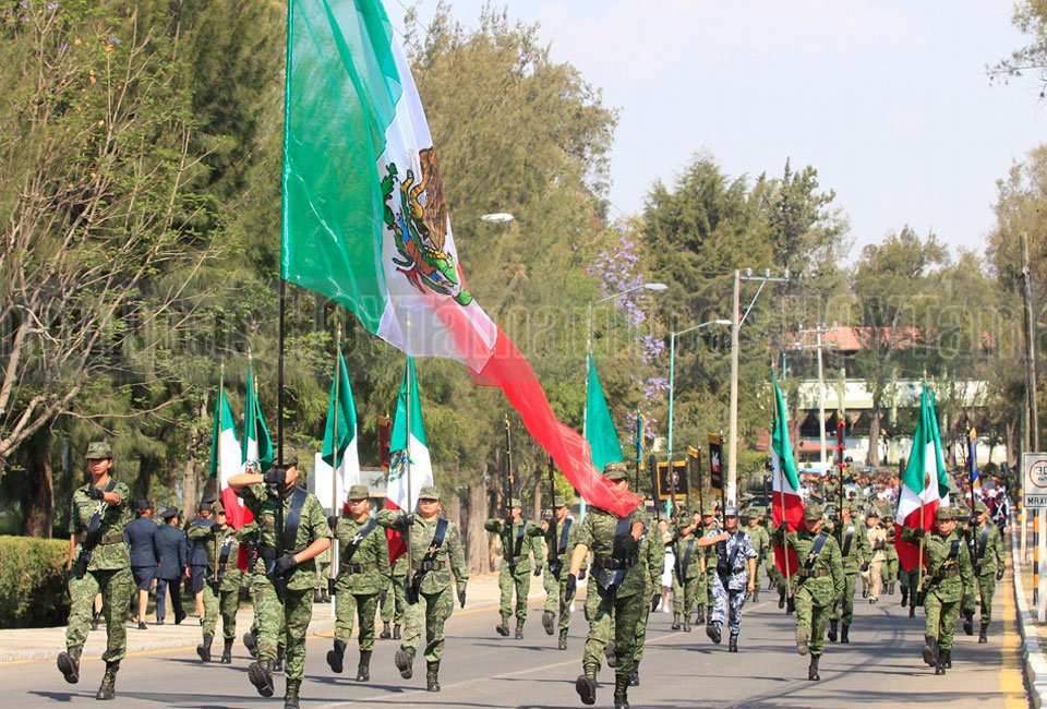 Elementos del Ejército Mexicano realizaron el pase de revista para el desfile Cívico-Militar que conmemora la Batalla de Puebla de 1862