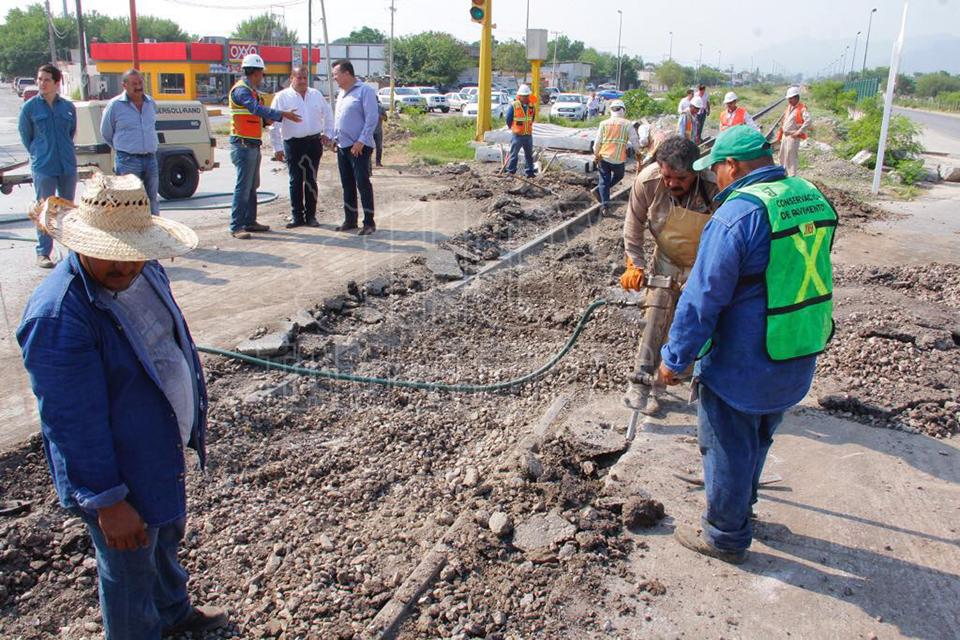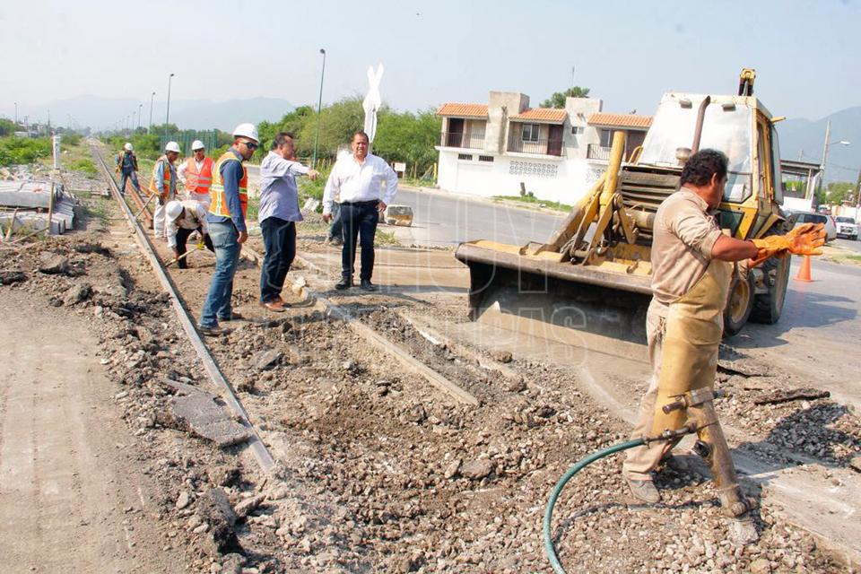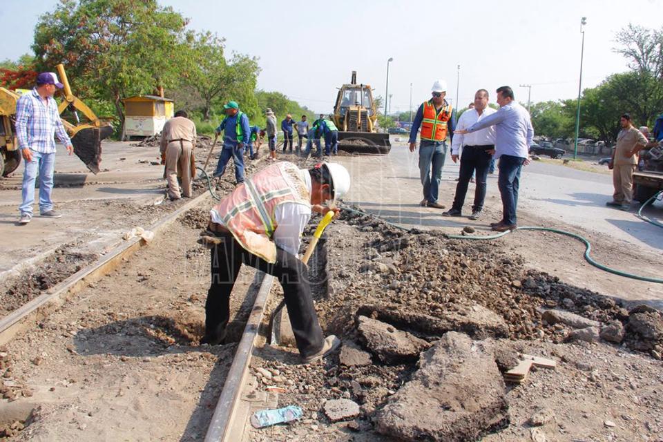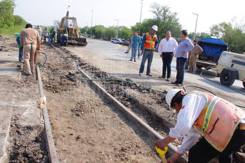 Las calles Alejandro Prieto y Eje Vial a la altura de la colonia Caminera de Ciudad Victoria son rehabilitadas por la Presidencia Municipal en coordinación con la empresa Ferromex.