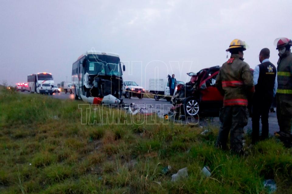 Una persona murió tras un choque con volcadura entre una camioneta y un autobús que transportaba personal