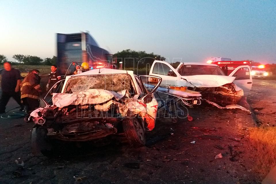 Una mujer y un hombre, presuntamente empleados de una línea transportista, murieron hoy sábado en un accidente vehicular ocurrido sobre el Segundo Anillo Periférico de Nuevo Laredo