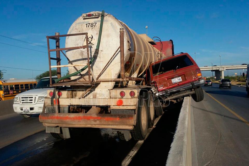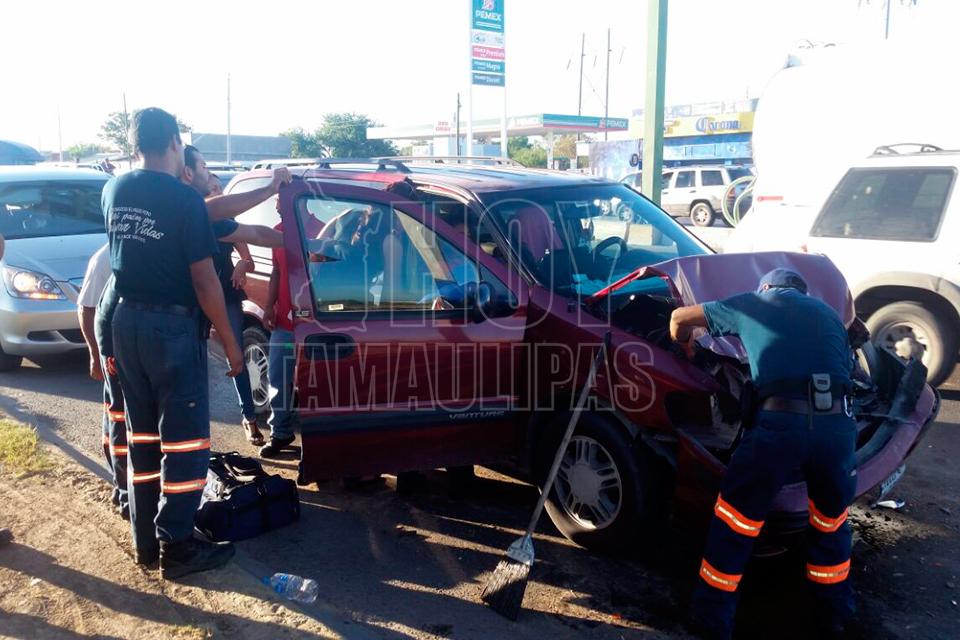 Una mujer lesionada y miles de pesos en daños materiales fue el saldo de un doble accidente registrado en la carretera a Anáhuac en donde se vieron involucrados al menos cuatros vehículos