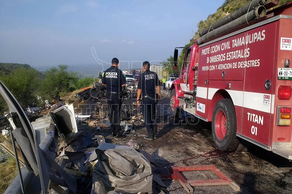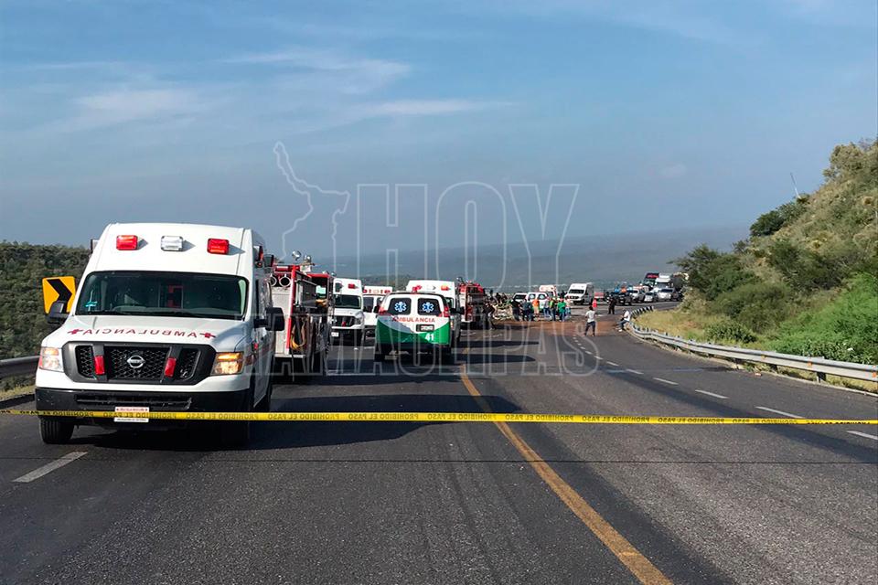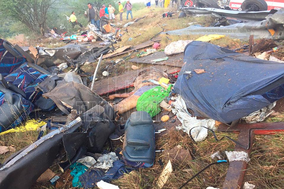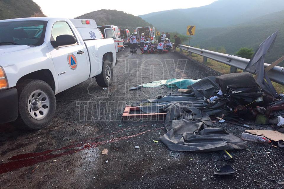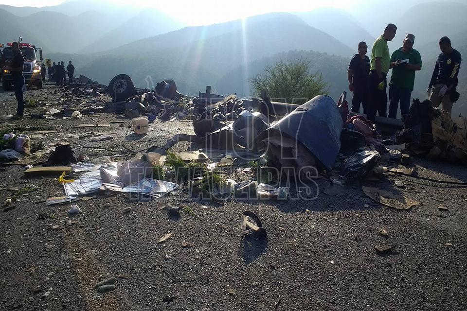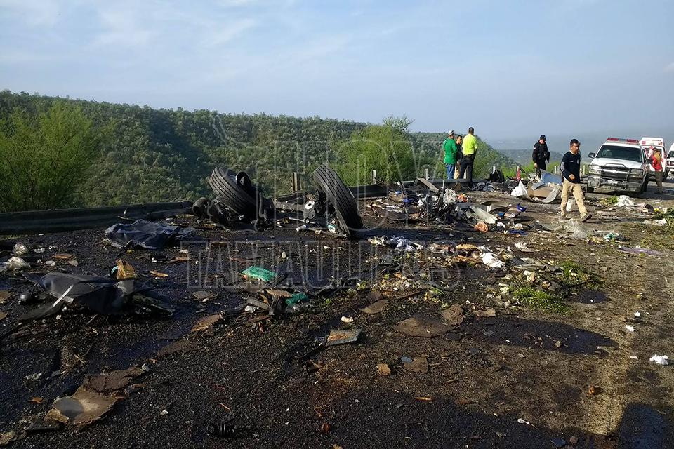 Al menos diez personas muertas, entre ellas una menor de edad, así como 12 más lesionadas, fue el saldo del choque entre un autobús y un tráiler registrado esta mañana